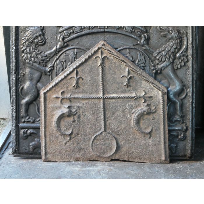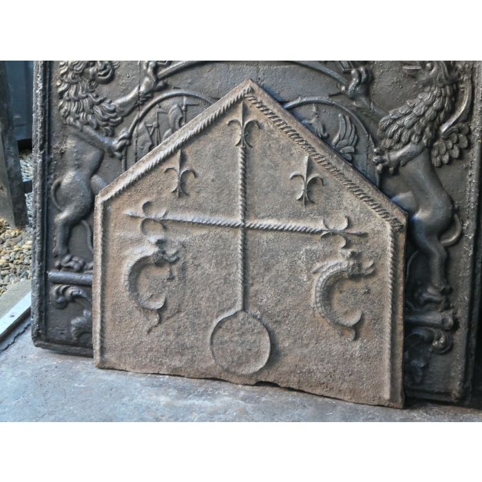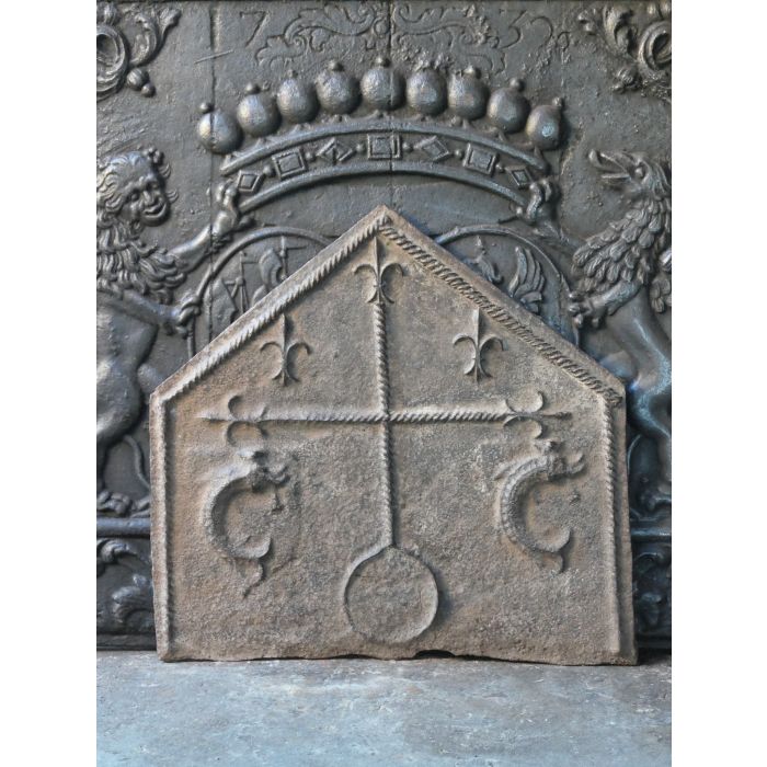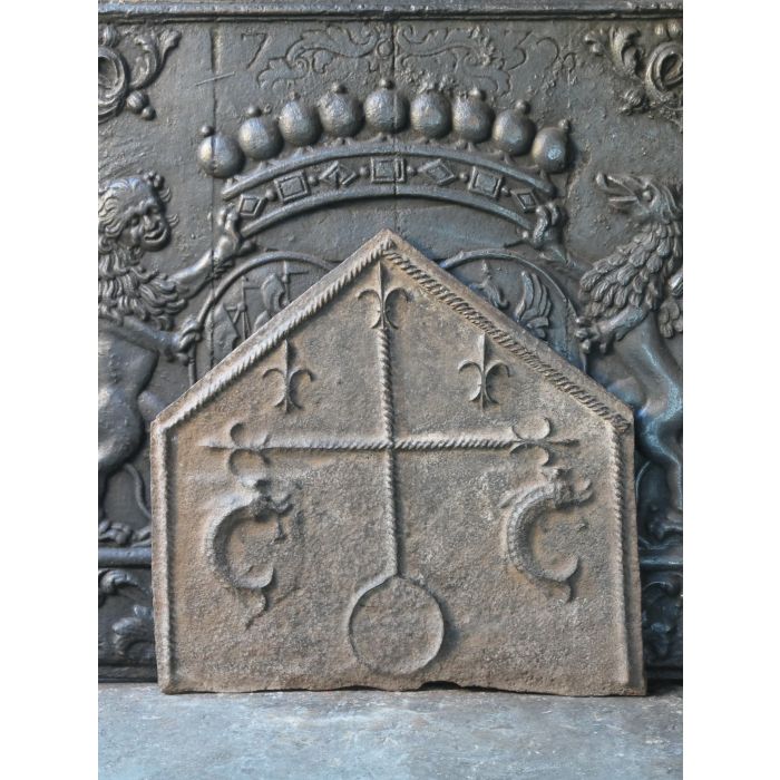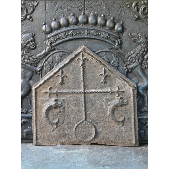 | Color | Brown If an old or antique fireplace accessory has a nice brown patina of rust, we tend to preserve that; thus the items remains brown. In all other instances, our firebacks and andirons have been treated with stove polish and thereby have a black/greyish color. If you prefer to have a black-colored fireback or pair of andirons, we can deliver any brown fireback or pair of andirons in black. Yet, a black fireplace accessory cannot be delivered in brown. Realize that a fireback in use in a fireplace will get black in its central section regardless. |