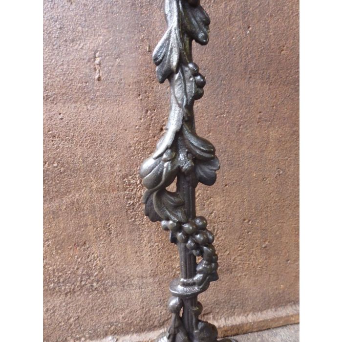 | Condition | *** Classification: ***: Very good condition, limited wear given the age and use. **: Clear signs of wear and possible structural problems including small instabilities. Still well suited for use in an open fireplace. *: Structural instability that hinders function other than decorative. For example, open fireplace tongs with a loose mechanism so that the ends can overlap. A fireback in this classification can still be used in a gas fireplace or as a backsplash. Should you want additional information about the quality or the classification of a specific fireplace accessory, do not hesitate to ask. |