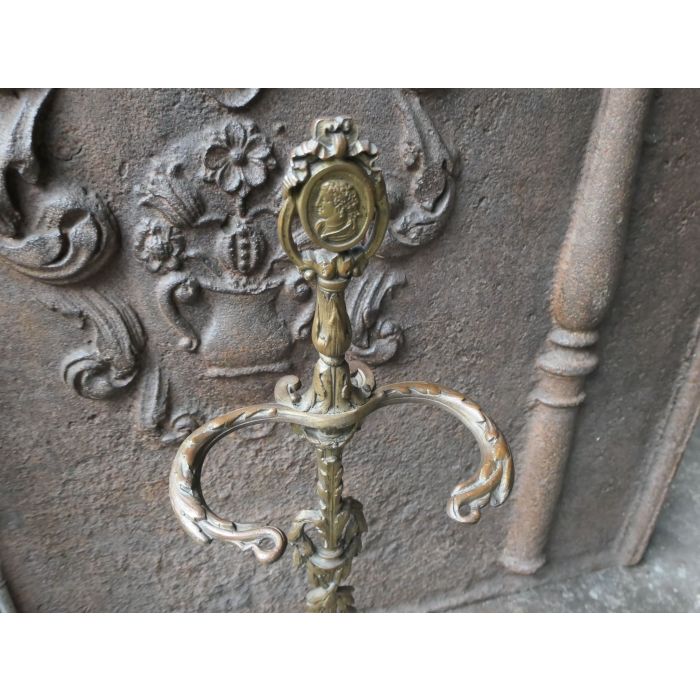 | Condition | *** Classification: ***: Very good condition, limited wear given the age and use. **: Clear signs of wear and possible structural problems including small instabilities. Still well suited for use in an open fireplace. *: Structural instability that hinders function other than decorative. For example, open fireplace tongs with a loose mechanism so that the ends can overlap. A fireback in this classification can still be used in a gas fireplace or as a backsplash. Should you want additional information about the quality or the classification of a specific fireplace accessory, do not hesitate to ask. |