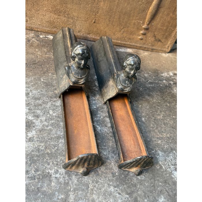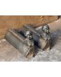 | Color | Brown If an old or antique fireplace accessory has a nice brown patina of rust, we tend to preserve that; thus the items remains brown. In all other instances, our firebacks and andirons have been treated with stove polish and thereby have a black/greyish color. If you prefer to have a black-colored fireback or pair of andirons, we can deliver any brown fireback or pair of andirons in black. Yet, a black fireplace accessory cannot be delivered in brown. Realize that a fireback in use in a fireplace will get black in its central section regardless. |